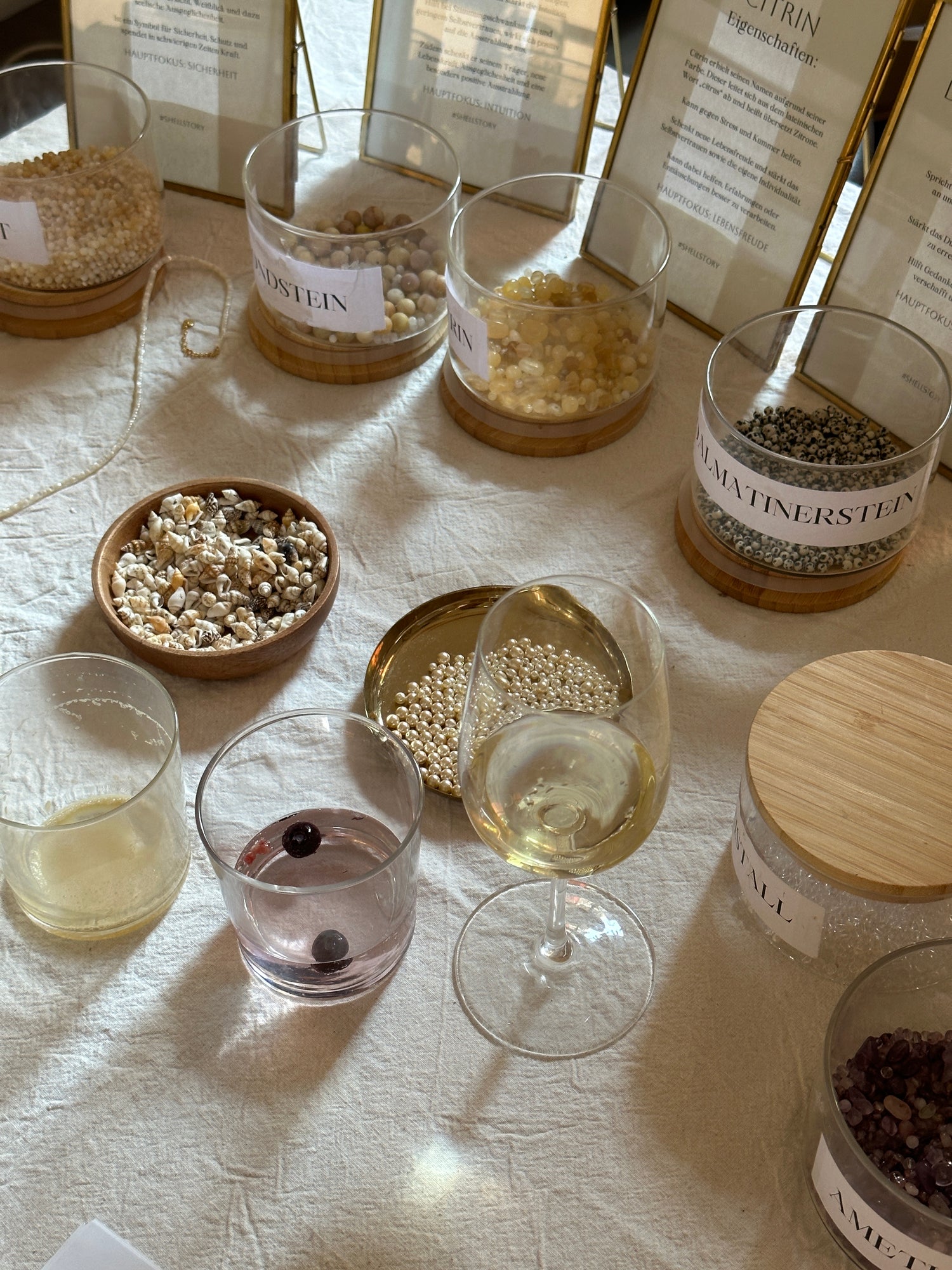 Wir verbinden diese Elemente zu einem wunderschönen Nachmittag/Vormittag. Ganz individuell wird dabei auf eure Wünsche eingegangen. Ihr entscheidet, wollt ihr Ringe, Ketten oder Armbänder erstellen? Eurer Kreativität ist keine Grenzen gesetzt!